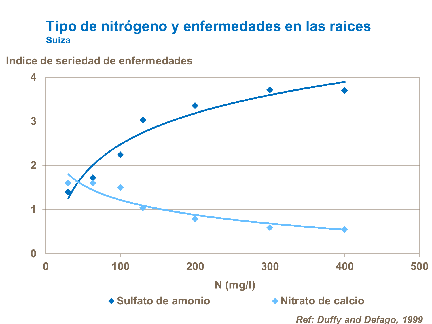 En Suiza, estudios sobre la susceptibilidad de la planta del tomate a podredumbres de follaje y raíz causadas por fusarium, encontraron que el nitrógeno nítrico inhibe el desarrollo de estas enfermedades y disminuye el efecto de ácido fusárico, una toxina liberada por el patógeno.