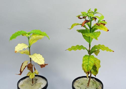 Las deficiencias de N normalmente se presentan en las hojas más viejas. Sin embargo, en el cafeto aparecen primero en las partes más expuestas al sol. Las clorosis por deficiencias de N y S son muy similares. Cuando la deficiencia es de N la superficie de la hoja se ve opaca, mientras que cuando la deficiencia es de S, la superficie permanece brillosa.